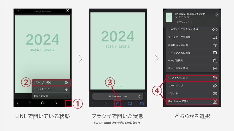 ④ファイルに保存、もしくはGoodnotesで開きます。